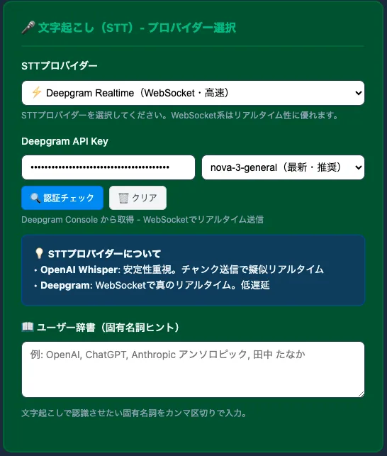 実装では、STTプロバイダーを切り替えられる形にしました。